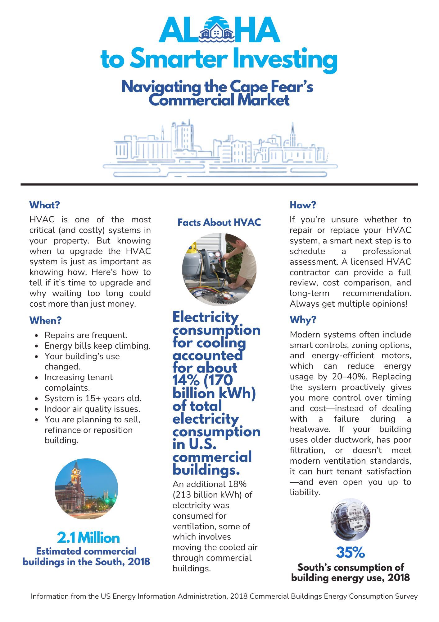 An additional 18% (213 billion kWh) of electricity was consumed for ventilation, some of which involves moving the cooled air through commercial buildings.